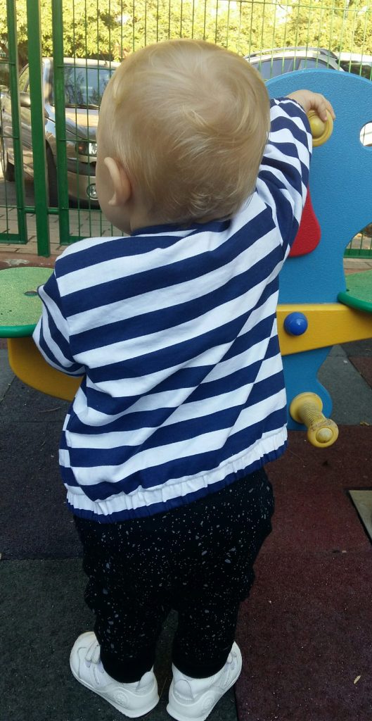 Querido niño rubio con jersey de rayas vas a cumplir tu primer año y ya eres único,